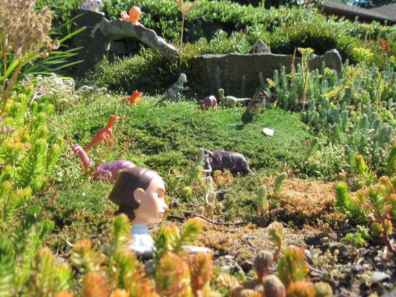 My Garden Guru Steve shared this fantastic garden. It is set up in the sedum garden of a home’s front yard. The neighborhood children gather here to create a garden of their own. I’ll let the pictures tell their story. Enjoy!